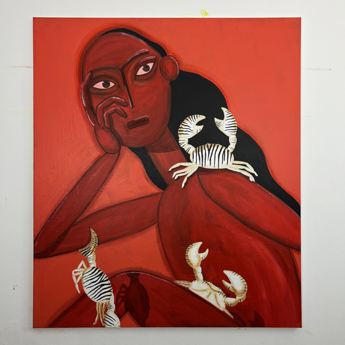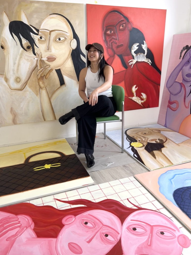 I was born and raised in Germany and studied Construction Technology and Ethics. Since 2019, I work as a painter, using my art to express passion and compassion. A central theme in my work is the emotional connection between people and people and nature. I love long days by the lake and even longer nights in the studio. Things I also like: feminism, clouds, moss, naps, balconies, spring and matcha.
